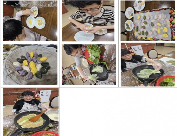 추석이라 하면 송편이 생각나죠? 그래서 성촌의집 여자이용인은 직접 배추전도 부치고, 송편도 예쁘게 빚어 봅니다.