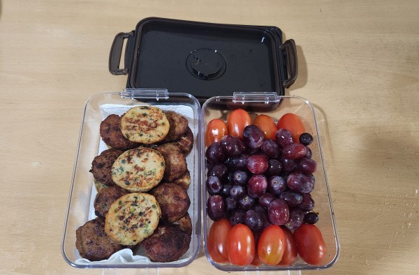 점심에는 출근도 해야하고 해서 동그랑땡으로 간단한 재료를 선택하고 과일 도시락으로 두 가지 요리를 생각해 보았어요.